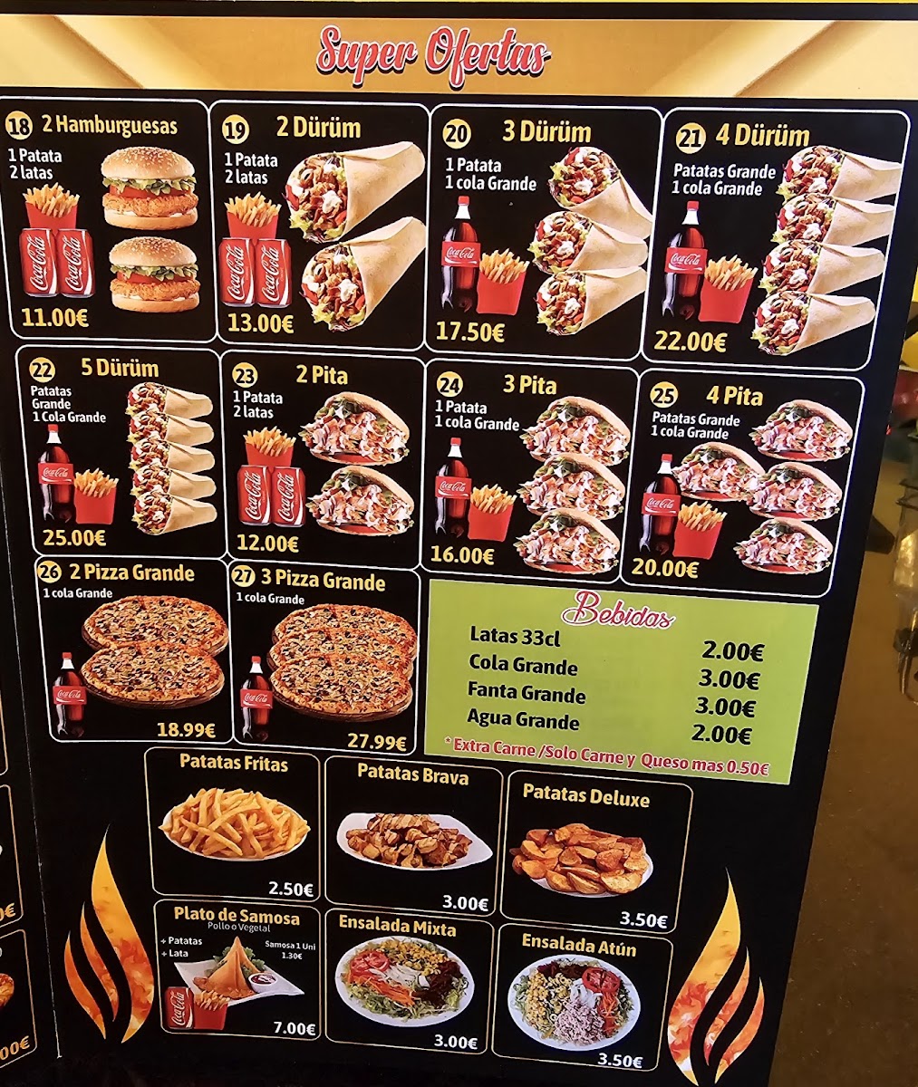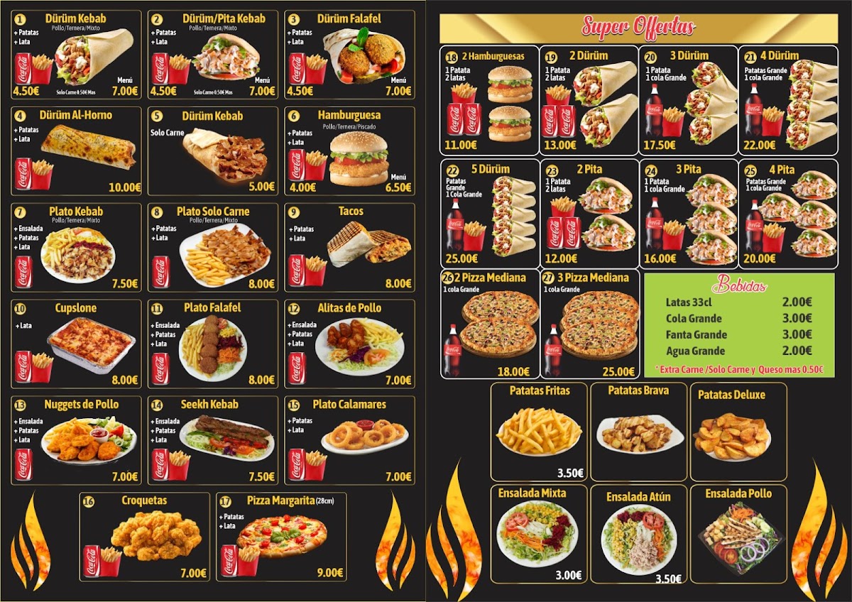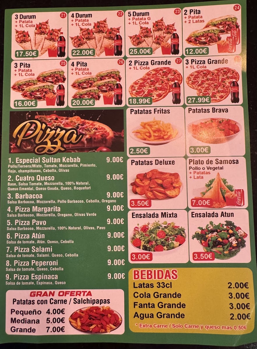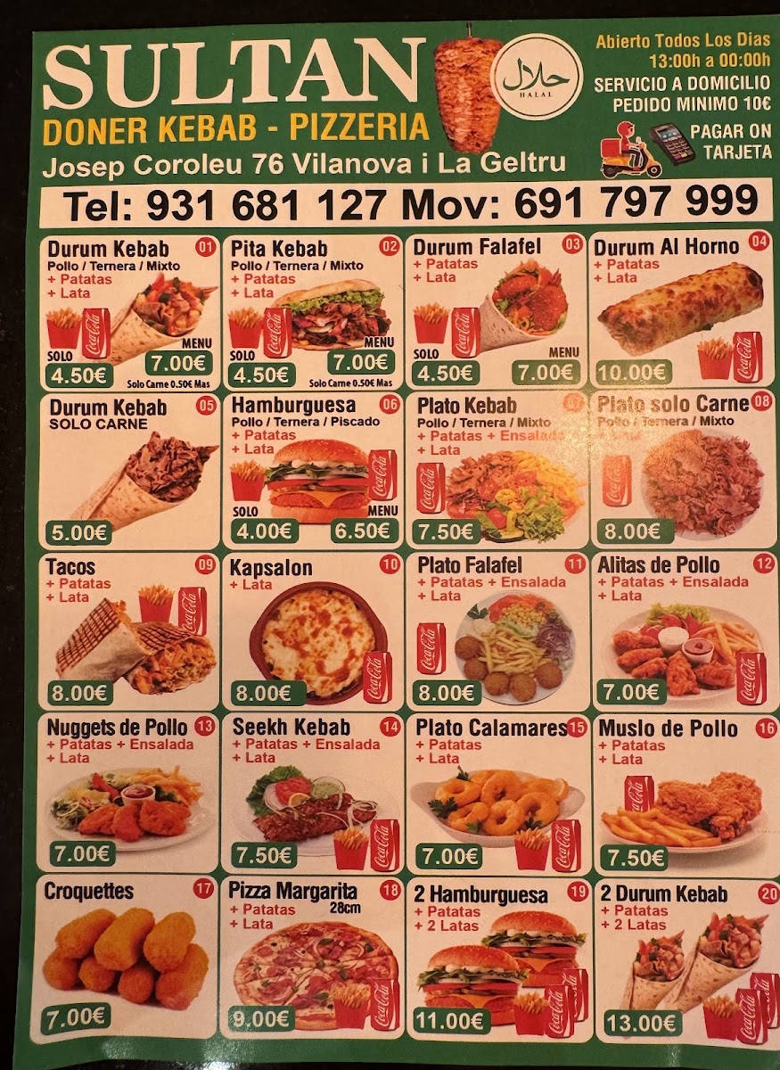 Welcome to Sultan 1 Kebab, a culinary gem nestled in Vilanova i la Geltrú. This Indian restaurant captivates with a diverse menu that perfectly marries traditional flavors and modern comfort food. From the succulent kebabs to the indulgent pizzas, each dish is crafted with care. The Durum Al Horno, featuring your choice of chicken or beef with crispy fries, is a standout, delivering a delightful blend of spices and textures. For pizza lovers, the Pizza Cuatro Quesos showcases a rich mélange of cheeses, while the Pizza Barbacoa offers a smoky twist with tender barbecue chicken. Customers rave about the friendly ambiance and attentive service, making every visit a memorable experience. With glowing reviews noting the exceptional flavors and beautiful presentation, Sultan 1 Kebab not only satisfies hunger but also warms the heart. Come and discover why this place is highly recommended for delicious, value-packed meals!